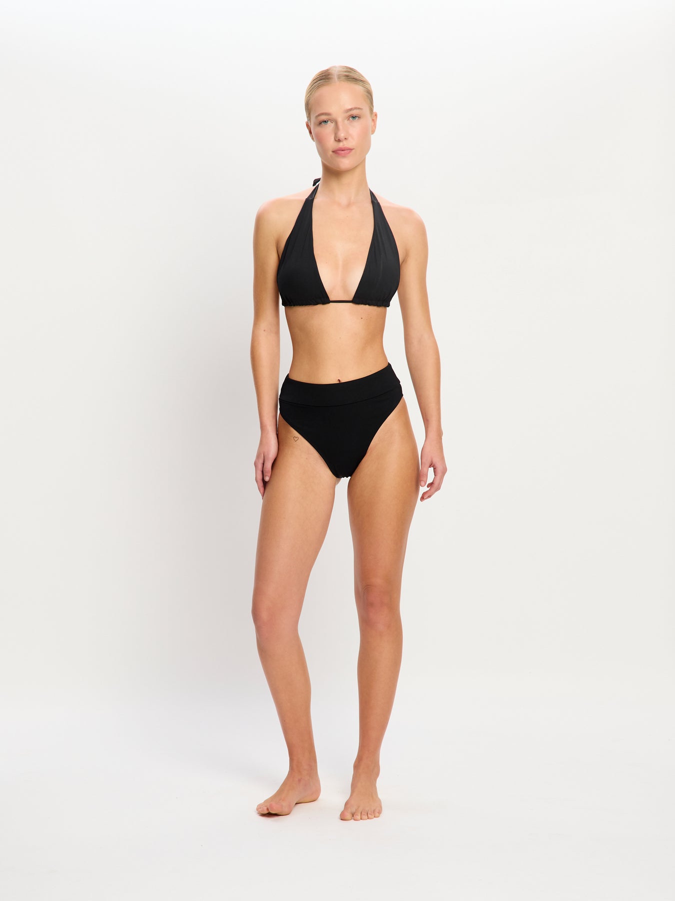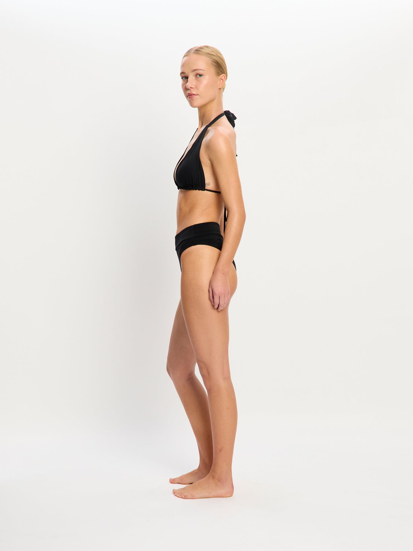 העיצוב האייקוני כולל מפתח ירך גבוה ומחמיא עם כיסוי ישבן בינוני.