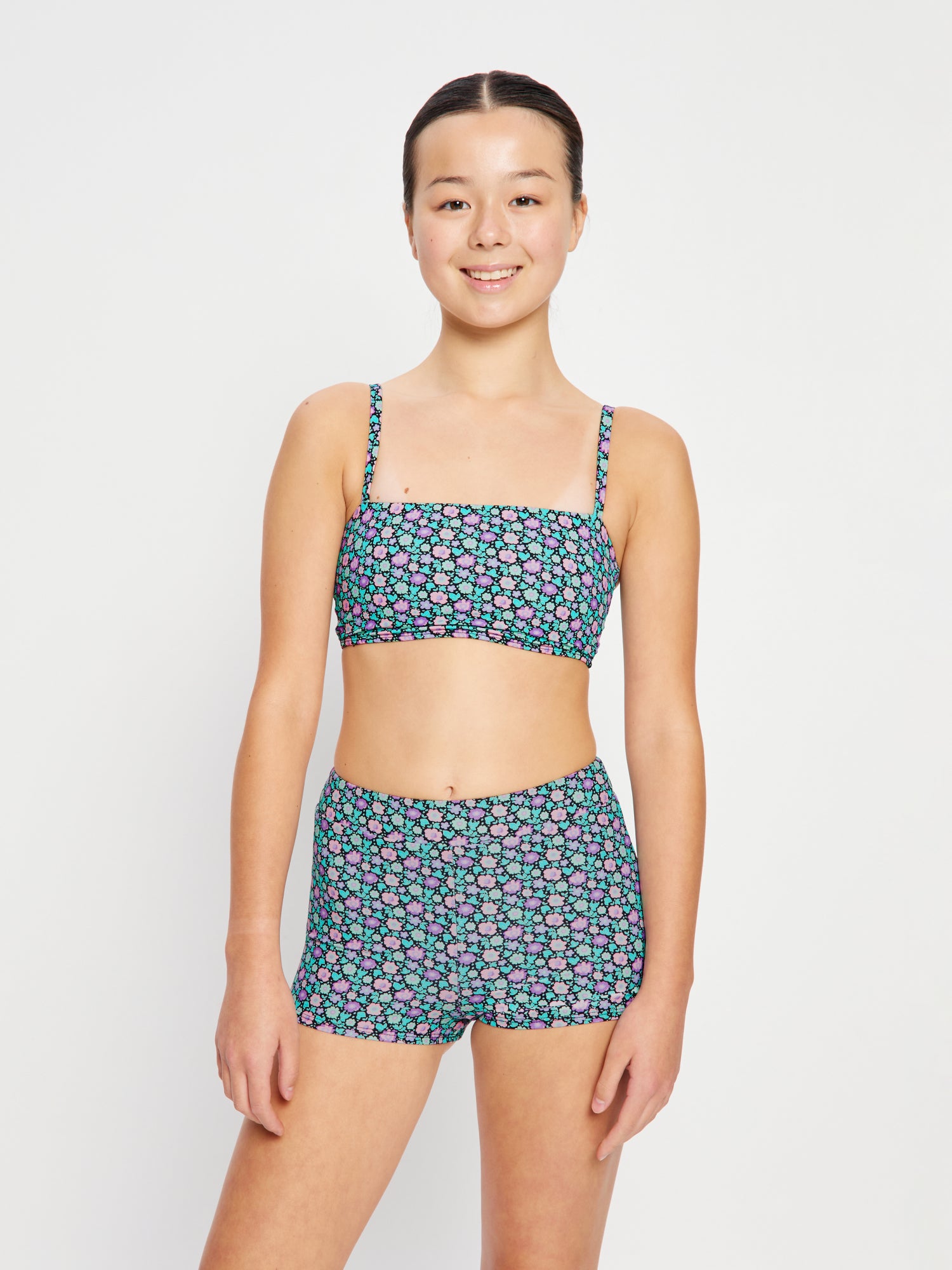 הסט כולל חלק עליון: טופ בגד ים בנדאו עם כתפיות מתכווננות ורפידות נשלפות וחלק תחתון: מכנסון בגד ים סופג (ספיגת סופר) בדגם Luna Blossom Black.